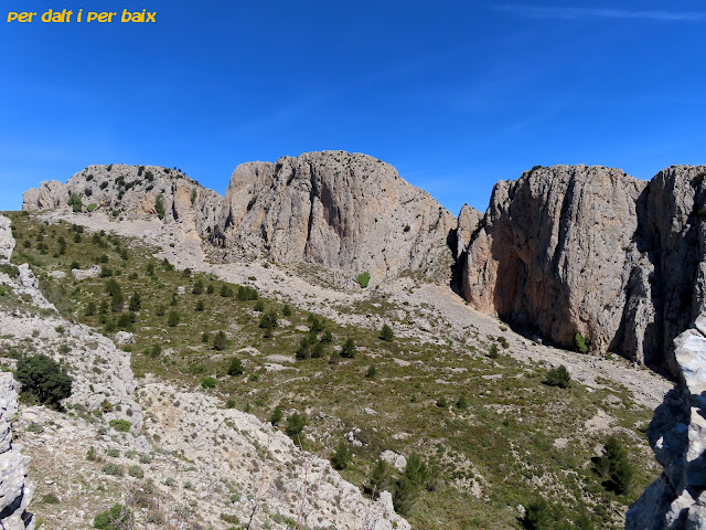 | Al fondo aparece la puntiaguda cima de la Penya Alta de la Xortà, a la que volveríamos a subir unos meses después con nuestros amigos Toni y Maru de Magia Serrana. |